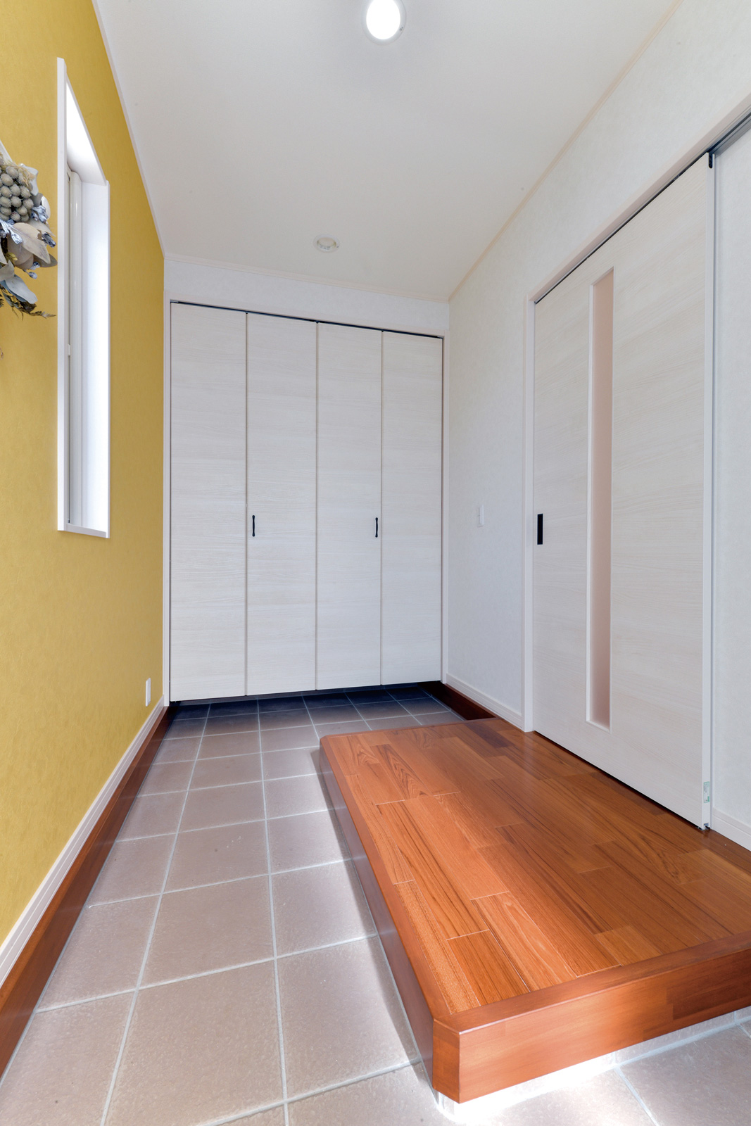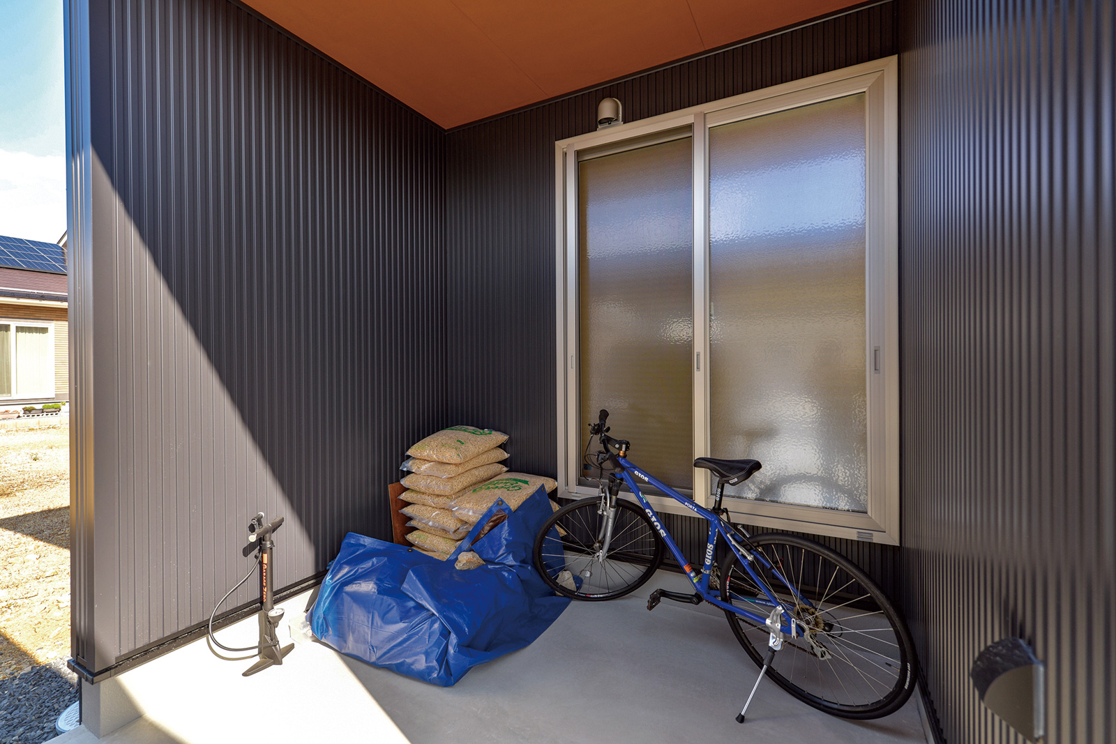- 玄関土間をコの字型にすることで稼働スペースと収納空間の両方を確保。